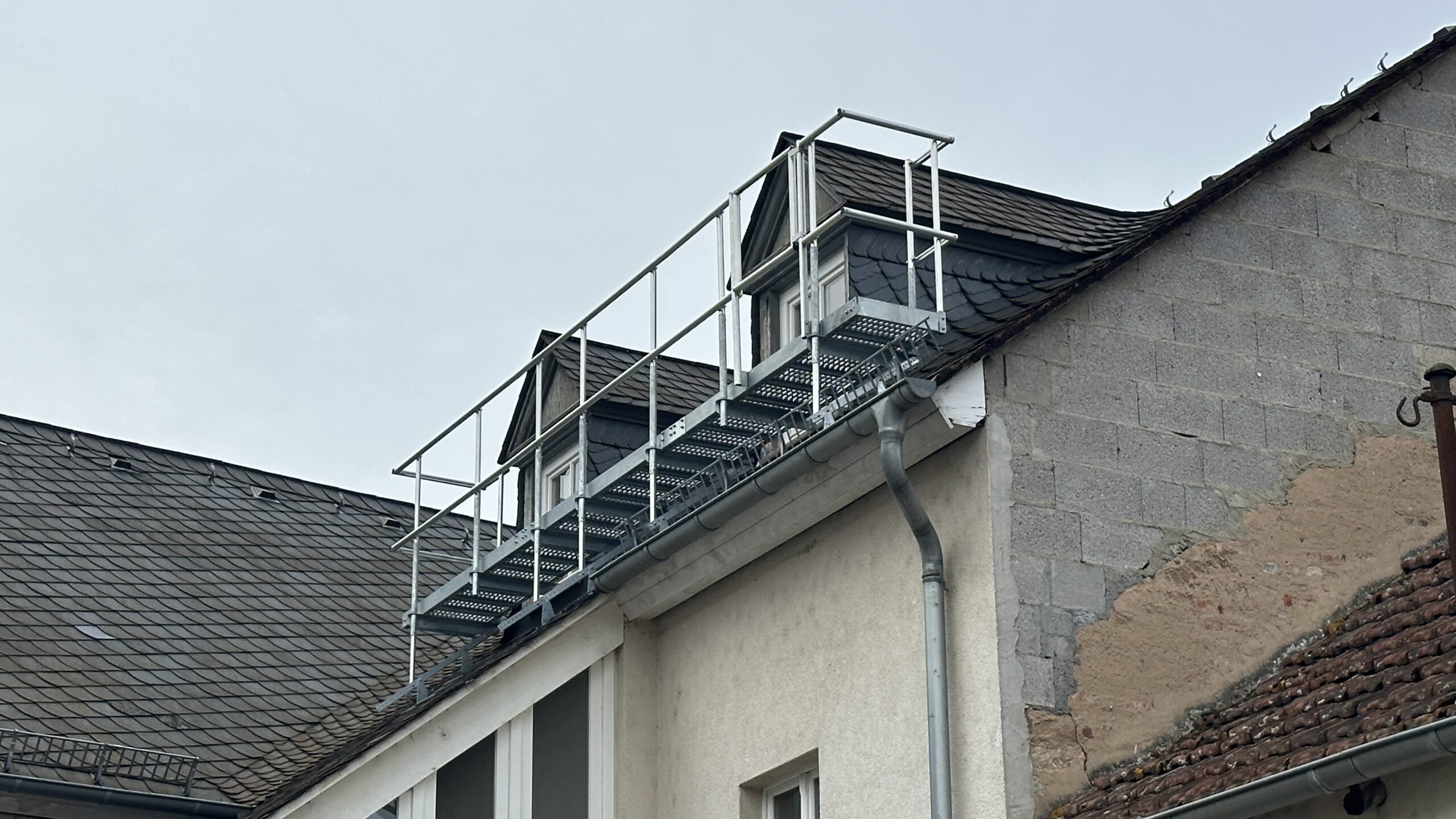 Für ein Wohngebäude mit mehreren Dachgauben wurde ein sicherer und dauerhaft nutzbarer Rettungsweg für die Feuerwehr gefordert. Ziel des Projektes war es, den Zugang mittels Leiter zu den Dachflächenfenstern und Gauben im Einsatzfall schnell, sicher und normgerecht zu ermöglichen.